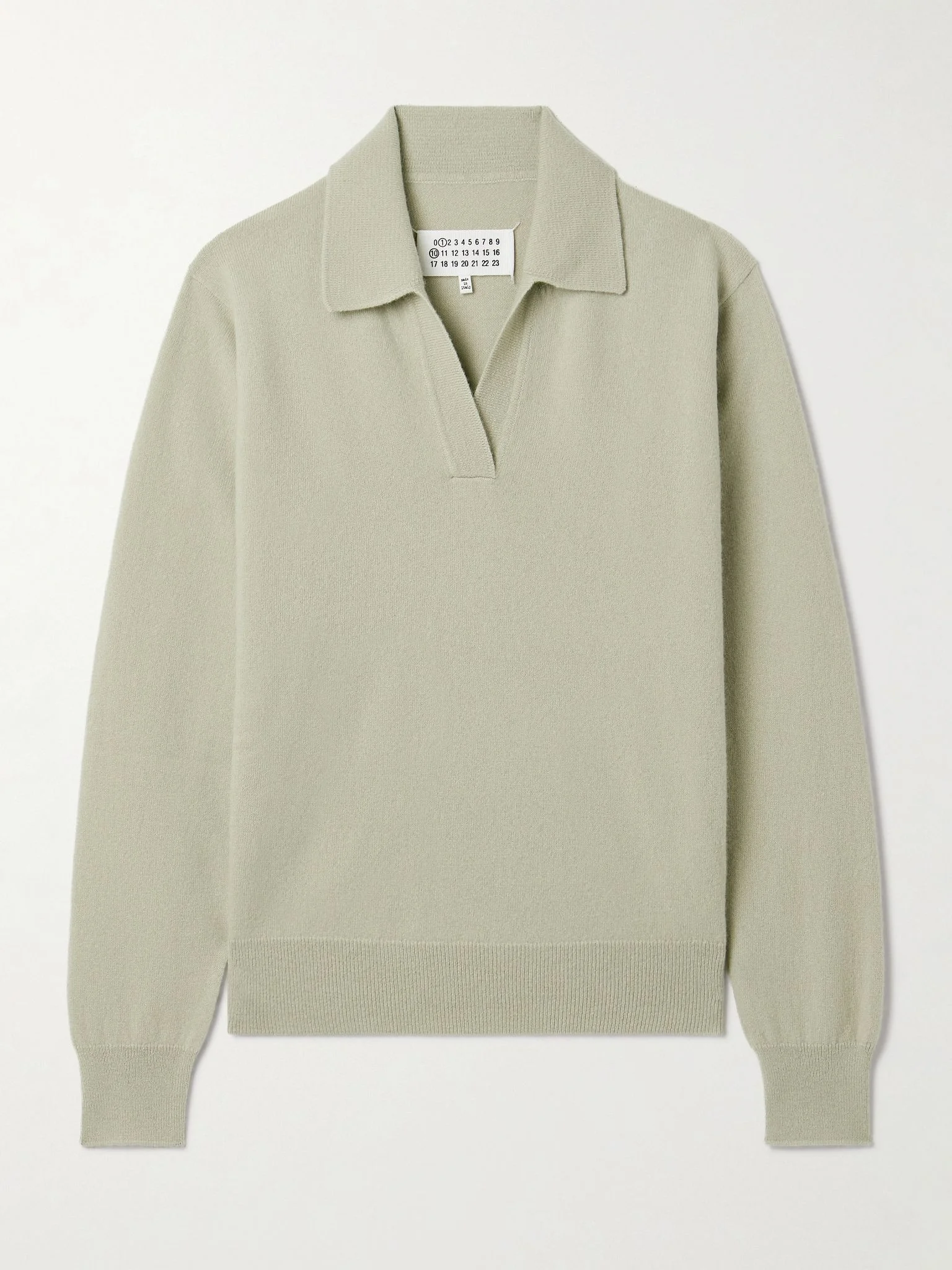 Maison Margiela uses only the finest fabrics to ensure lasting quality. This polo sweater has been knitted in Italy from naturally insulating yet lightweight wool. The versatile sage-green color will go with any wash of denim. Size & Fit - Fits true to size, take your normal size - Intended for a slightly loose fit - Lightweight knit - Model is 175cm/ 5'9" and is wearing a size Small Details & Care - Sage-green wool - Slips on - 100% virgin wool - Dry clean
