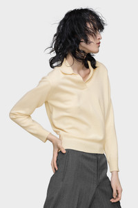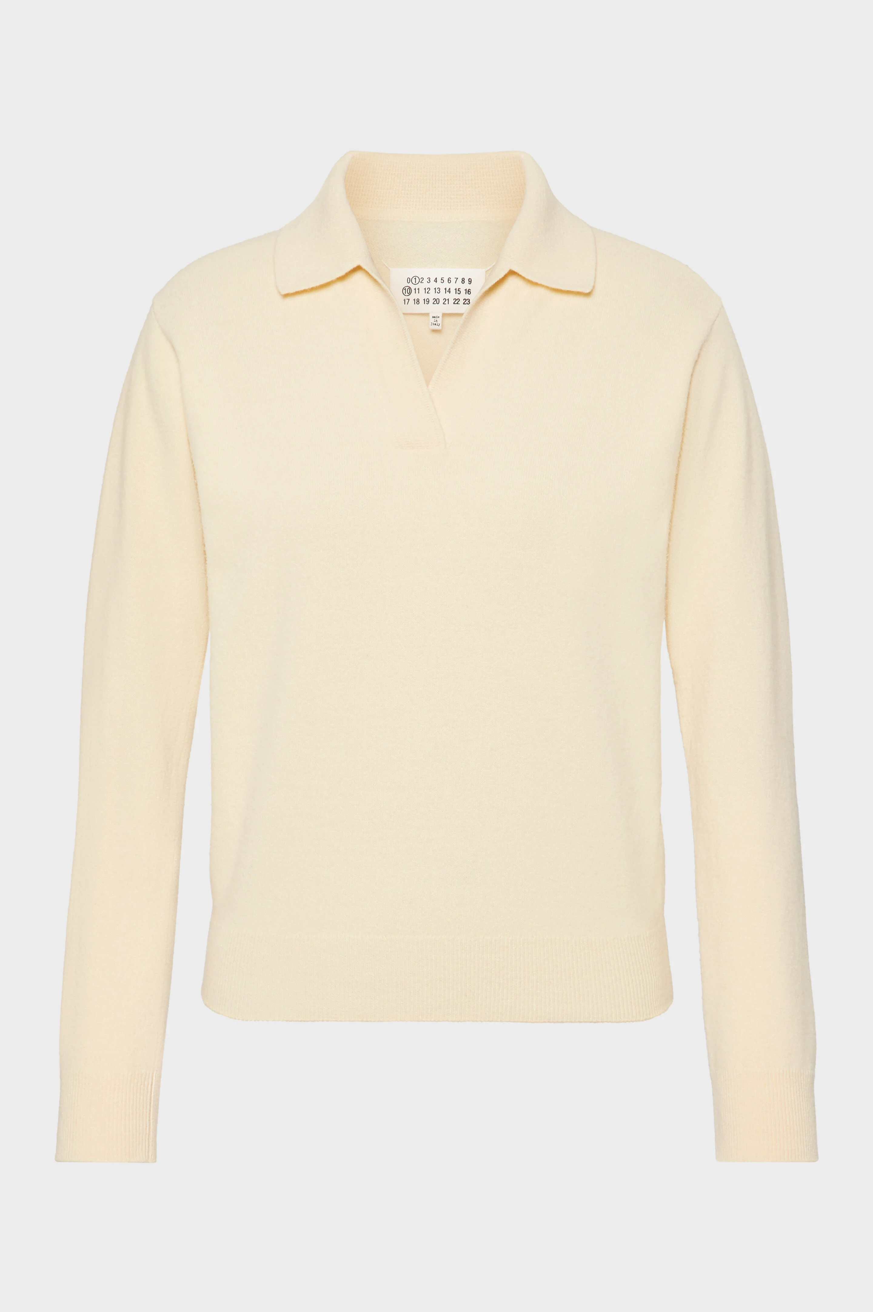 With its open collar and ribbed trims, this wool knit references heritage polo shapes. The silhouette features a relaxed fit, and a soft luxurious feel. Maison Margiela’s signature, the four stitches, appear at the back; the opposite of a label. Product Details Item ID S51GL0063M13144104 Primary Fabric: 100% Virgin Wool Long-sleeve sweater in pure virgin wool V-neck construction Ribbed hem and cuffs Four stitches at the back Made in Italy