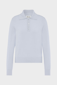 With its tab front collar and ribbed trims, this wool knit references heritage polo shapes. The silhouette features a relaxed fit, and a soft luxurious feel. Maison Margiela’s signature, the four stitches, appear at the back; the opposite of a label. Product Details Item ID S51GL0068M13225500 Primary fabric: 100% virgin wool Gauge 12 Long sleeves Shirt collar neckline Flat buttons closure at the front Four stitches at the back Made in Italy
