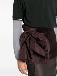 Decortique midi dress Highlights - Dark green/burgundy - Cotton - Mid-length - Front button placket - Decortique detailing - Ruffled detailing - Raw edge - Poplin collar - Polo collar - Long sleeves - Buttoned cuffs - Straight hem Made in Italy Composition Bottoms: Silk 100% Trims: Polyester 100% Lining: Viscose 100% Top: Cotton 100% SIZE & FIT Model measurements Height 5 ft 10 in(1.77 m) Bust/Chest 31.49 in(80 cm) Hips 35.43 in(90 cm) Waist 25.19 in(64 cm) FittingInformation Designed for a loose fit at the chest and waist with a close fit at the hips Made from a midweight non-stretch fabric