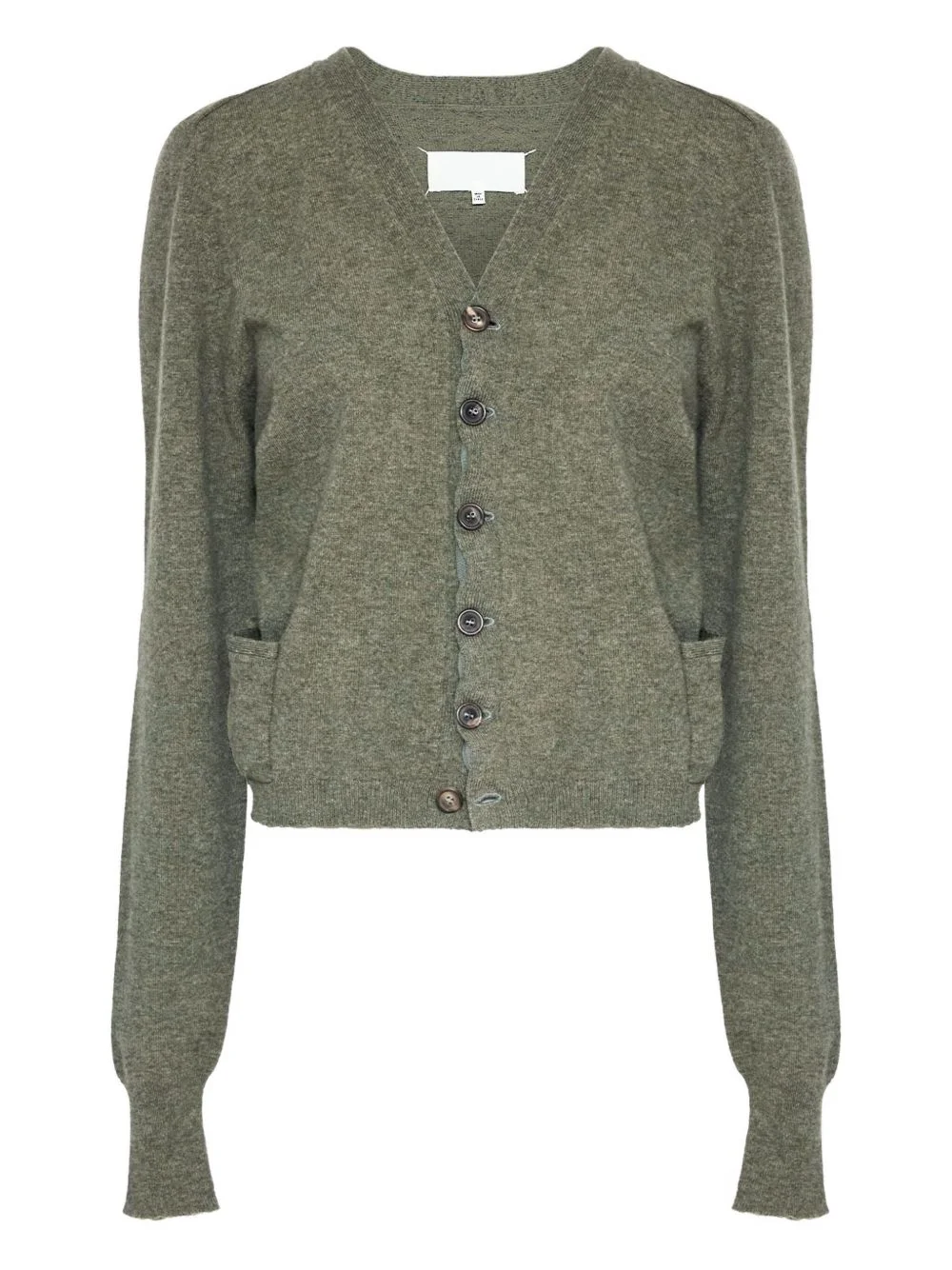 puff-sleeve button cardigan Highlights - Olive green - V-neck - Button fastening - Puff sleeves - Wool - Patch pockets Made in Italy Composition Wool 100% Washing instructions Read Manufacturer Guidelines