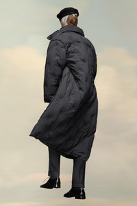 This oversized padded coat is made in recycled nylon, with a double-breasted front and classic collar. At the back, four white stitches show the hand of the Maison: the opposite of a label. The model is 187cm tall. Model wears size S.