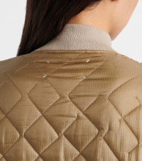 This jacket from Maison Margiela exudes effortless style with an elegant diamond-quilted silhouette. Made in Italy, the reversible design features ribbed trims and a zip, snap-button closure for a refined finish. Product Details - Material: 100% polyamide - Care instructions: dry clean - Made in Italy - Designer color name: Dune/Off White - Item color: beige - Filling: 100% polyester - Hardware color: silver - Cuff: ribbed - Closure: zipper, snap-button fastenings - Reversible - Item number: P01069734 Size & Fit - True to size - Straight fit - Non-stretchy fabric - Falls to the hip - The model seen in the picture is 178cm-5'10" and wearing a size XS