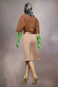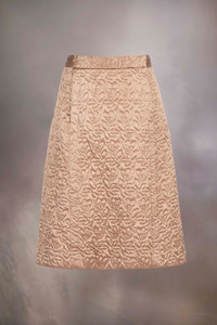 The elegant knee-length skirt in intricately quilted satin has two side pockets and seam detailing. Maison Margiela's signature, the four white stitches, appear at the back; the opposite of a label.