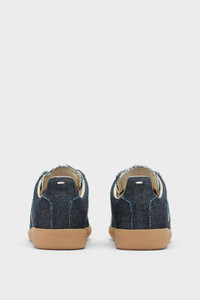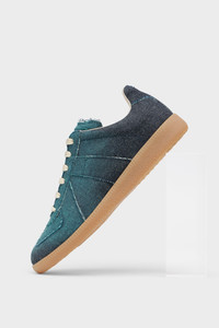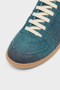 Crafted in raw-edge denim, these Replica sneakers are defined by exposed threads that trace the outline of each seam. A faded side panel acts as reference to the Maison’s Memory of technique, highlighting traces of past construction. The Maison's iconic Replica sneakers are inspired by Austrian sports shoes from the seventies. Details on the Replica pairs are continually reworked in line with the season's inspirations. Product Details Item ID S39WS0134P7577T6033 Upper: 100% Cotton Contrast: 100% Calf Leather Lining: 100% Cotton Inside: 100% Calf Leather Sole: 100% Rubber Bleached denim sneakers Panel detailing Textured gum sole White stitching at the back Made in Italy