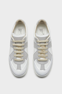 The Replica Glow sneakers are crafted in smooth calfskin and suede, finished with luminescent treatment at the base that glows in complete darkness. The Maison's iconic Replica sneakers are inspired by Austrian sports shoes from the seventies. Details on the Replica pairs are continually reworked in line with the season's inspirations. Product Details Item ID S58WS0270P7450HB122 Upper: 100% calf leather Contrast: 100% calf leather Lining: 100% cotton Sole: 100% rubber Lace-up sneakers in nappa leather and crust leather Contrasting sole with glow in the dark treatment Maison Margiela logo label on the tab White stitching at the back Internal Replica label Internal elastic All-over Maison Margiela logo insole Clean with a gentle leather cleanser Made in Italy