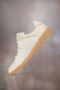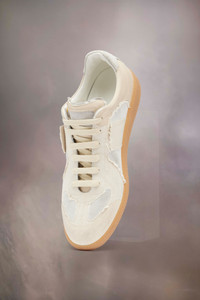 The Replica sneakers in reversed suede for an inside out look. The back features a single white stitch showing the hand of Maison Margiela. The Maison's iconic Replica sneakers are inspired by Austrian sports shoes from the seventies. Details on the Replica pairs are continually reworked in line with the season's inspirations. Product Details Item ID S58WS0251P6847HA336 Upper: 100% calf leather Contrast: 100% calf leather Contrast: 100% cotton Contrast: 74% polyester, 26% rubber Lining: 100% cotton Sole: 100% rubber Lace-up reversed sneakers Contrasting sole Logo label on the tab White stitching at the back Internal Replica label Internal elastic All-over logo insole Made in Italy A digital certificate provided by the Aura Blockchain Consortium guarantees the authenticity of this product. Discover more on auraluxuryblockchain.com/#about