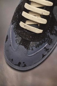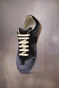 The Replica sneakers in calfskin and suede featuring a paint splatter design. The back features a single white stitch showing the hand of Maison Margiela. The Maison's iconic Replica sneakers are inspired by Austrian sports shoes from the seventies. Details on the Replica pairs are continually reworked in line with the season's inspirations. Product Details Item ID S57WS0481P6230H0A66 Upper: 100% calf leather Contrast: 100% calf leather Lining: 100% cotton Sole: 100% rubber Leather sneakers with handmade treatment at the front Logo label on the tab White stitching at the back Internal Replica label Internal elastic All-over logo insole Leather part: gently rub using a microfiber cloth with softner to clean Suede: gently brush with a delicate brush Made in Italy A digital certificate provided by the Aura Blockchain Consortium guarantees the authenticity of this product. Discover more on auraluxuryblockchain.com/#about