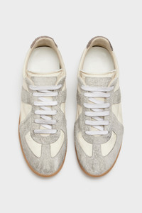 The Replica sneakers in dirty treatment nylon and hairy suede are supported by a classic rubber sole. The Maison's iconic Replica model is inspired by Austrian sports shoes from the seventies. Details on the Replica pairs are continually reworked in line with the season's inspirations. Maison Margiela's signature white stitch appears at the back. Product Details Item ID S58WS0268P8170HA839 Upper: 100% Polyester Contrast: 100% Calf Leather Contrast: 100% Calf Leather Lining: 100% Cotton Inside: 100% Calf Leather Sole: 100% Rubber Lace-up sneakers in nylon and suede Used treatment Contrasting sole Maison Margiela logo label on the tab White stitching at the back Internal elastic Clean the leather part with a gentle cleanser Made in Italy