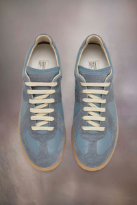 The Replica sneakers in nappa leather and suede with a honey sole. The Maison's iconic Replica sneakers are inspired by Austrian sports shoes from the seventies. Details on the Replica pairs are continually reworked in line with the season's inspirations. Product Details Item ID S58WS0109P1895T8189 Upper: 100% calf leather Contrast: 100% calf leather Lining: 100% cotton Sole: 100% rubber Lace-up sneakers in nappa leather and crust leather Contrasting sole Maison Margiela logo label on the tab White stitching at the back Internal Replica label Internal elastic All-over Maison Margiela logo insole Clean with a gentle leather cleanser Made in Italy A digital certificate provided by the Aura Blockchain Consortium guarantees the authenticity of this product. Discover more on auraluxuryblockchain.com/#about