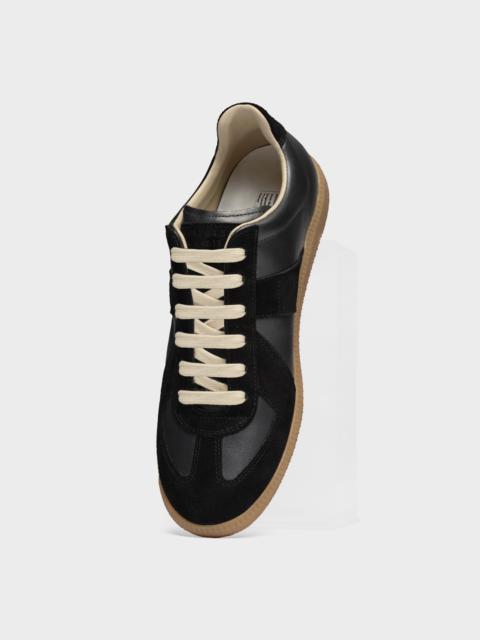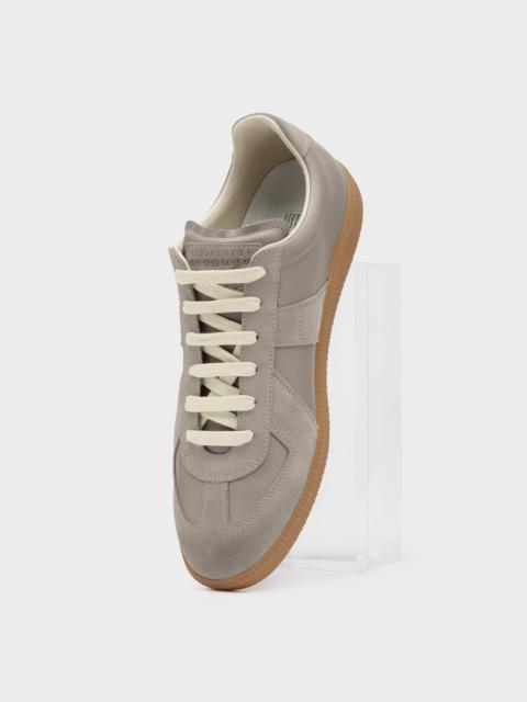 The Replica sneakers in nappa leather and suede with a honey sole. The Maison's iconic Replica sneakers are inspired by Austrian sports shoes from the seventies. Details on the Replica pairs are continually reworked in line with the season's inspirations. Product Details Item ID S58WS0109P1895T1009 Upper: 100% calf leather Contrast: 100% calf leather Lining: 100% cotton Inside: 100% calf leather Sole: 100% rubber Heel height: 3 cm Suede and nappa leather panels Lace-up closure Four stitches at the back Replica label on tongue Made in Italy