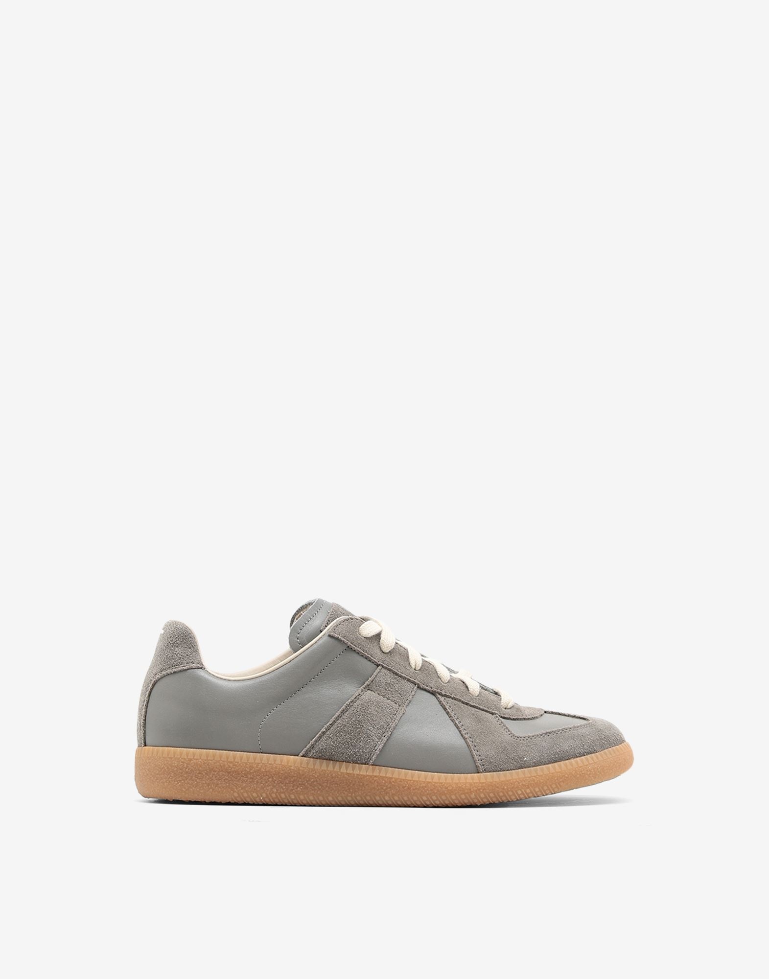 Replica sneakers in nappa leather. The numerical logo is present on the tongue and the back is marked with the white stitch. The Maison's iconic Replica sneakers are inspired by men's sports shoes from the Austrian provence in the seventies. Made in Italy. Item details 100% Bovine leather Suede effect Logo Laces Round toeline Leather lining Rubber sole