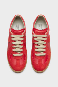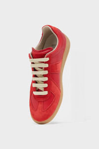 The Replica sneakers in nappa leather and suede with a honey sole. The Maison's iconic Replica sneakers are inspired by Austrian sports shoes from the seventies. Details on the Replica pairs are continually reworked in line with the season's inspirations. Product Details Item ID S58WS0109P1895T3193 Upper: 100% calf leather Contrast: 100% calf leather Lining: 100% cotton Inside: 100% calf leather Sole: 100% rubber Heel height: 3 cm Suede and nappa leather panels Lace-up closure Four stitches at the back Replica label on tongue Made in Italy