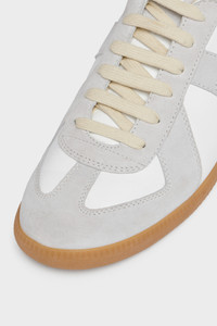 The Replica sneakers in nappa leather and suede with a honey sole. The Maison's iconic Replica sneakers are inspired by Austrian sports shoes from the seventies. Details on the Replica pairs are continually reworked in line with the season's inspirations. Product Details Item ID S58WS0109P1895T1016 Upper: 100% calf leather Contrast: 100% calf leather Lining: 100% cotton Inside: 100% calf leather Sole: 100% rubber Heel height: 3 cm Suede and nappa leather panels Lace-up closure Four stitches at the back Replica label on tongue Made in Italy The model is 177cm tall. Model wears size 39.
