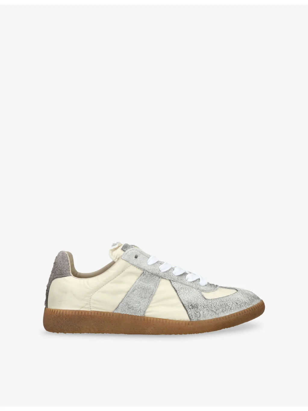PRODUCT DETAILS - Maison Margiela woven low-top trainers - 100% nylon; 100% suede - Lace-up fastening - Low top, round closed toe, suede panels, single back stitch, branded footbed, panelled design - Wipe with a clean, dry cloth - Upper: 100% nylon; 100 suede - Lining: 100% cotton - Sole: 100% rubber Ref: R04440668