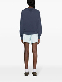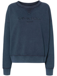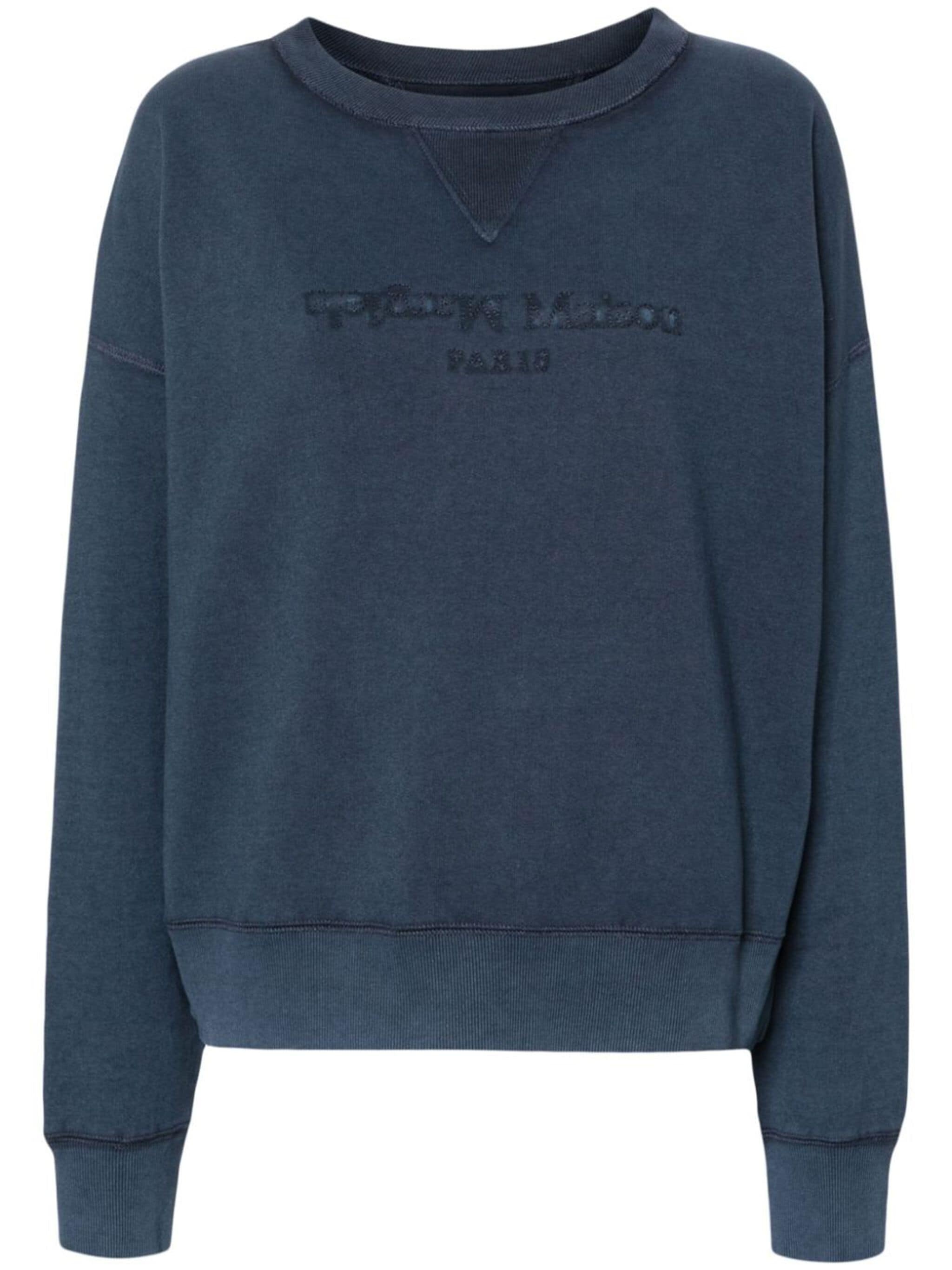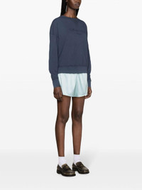 navy blue cotton jersey texture embroidered logo to the front signature four-stitch logo ribbed trim crew neck drop shoulder long sleeves straight hem French terry lining Size & Fit Model Measurements: Bust: 87cm Height: 180cm Hips: 91cm Waist: 63cm