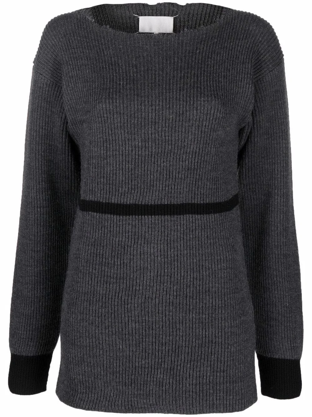 ribbed-knit jumper charcoal grey wool ribbed knit drop shoulder round neck long sleeves straight hem Made in Italy Composition Wool 100% SIZE & FIT Model measurements Height 5 ft 10 in(1.79 m) Bust/Chest 31.88 in(81 cm) Hips 35.43 in(90 cm) Waist 23.62 in(60 cm) FittingInformation This piece fits true to size. We recommend you get your regular size Cut for a slim fit Made with a heavyweight fabric Washing instructions Dry Clean Only