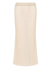ribbed-knit midi skirt Highlights - Light beige - Ribbed knit - Midi length - Elasticated waistband Made in Italy Composition Polyester 59%, Viscose 41%