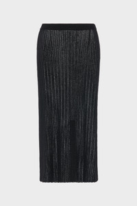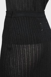 This midi skirt is crafted in a sheer ribbed knit that accentuates its shape. The elasticated waistband frames the silhouette with subtle structure, while the open knit pattern lends transparency and movement. At the back, the Maison’s signature four stitches appear; the opposite of a label. Product Details Item ID S51ME0059M13237900F Primary fabric: 52% viscose-rayon 48% polyester Gauge 14 Midi length Four stitches at the back Made in Italy