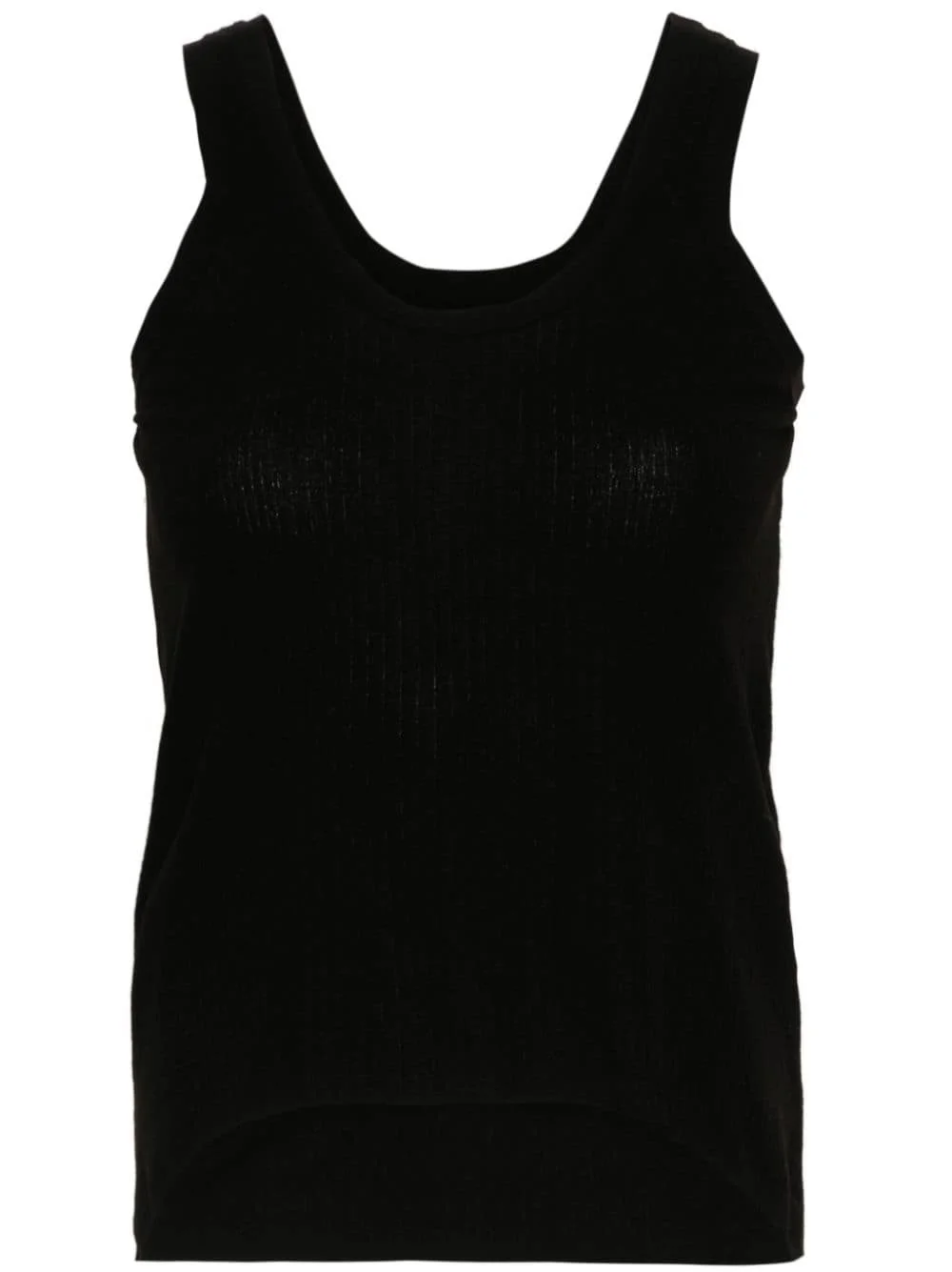 ribbed tank top Highlights - Black - Stretch-design - Fine ribbed - Lightweight - Round neck - Thin straps - Sleeveless - Signature four-stitch logo - High-low hem - Pull-on style Made in Italy Composition Polyamide 88%, Elastane 12% SIZE & FIT Model measurements Height 5 ft 10 in(1.78 m) Bust/Chest 33.46 in(85 cm) Hips 36.22 in(92 cm) Waist 23.22 in(59 cm) FittingInformation Designed for a slim fit that sits just away from the body offering a close yet comfortable fit Made with a lightweight knit, this piece offers some stretch This piece fits true to size – take your usual size