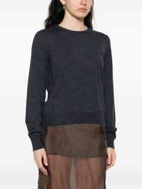 round-neck wool sweater Highlights - Blue - Wool fabric - Round neck - Long sleeves - Straight hem Imported Composition Wool 100% SIZE & FIT Model measurements Height 5 ft 9 in(1.75 m) Bust/Chest 32.67 in(83 cm) Hips 36.22 in(92 cm) Waist 24.8 in(63 cm) Washing instructions Dry Clean Only