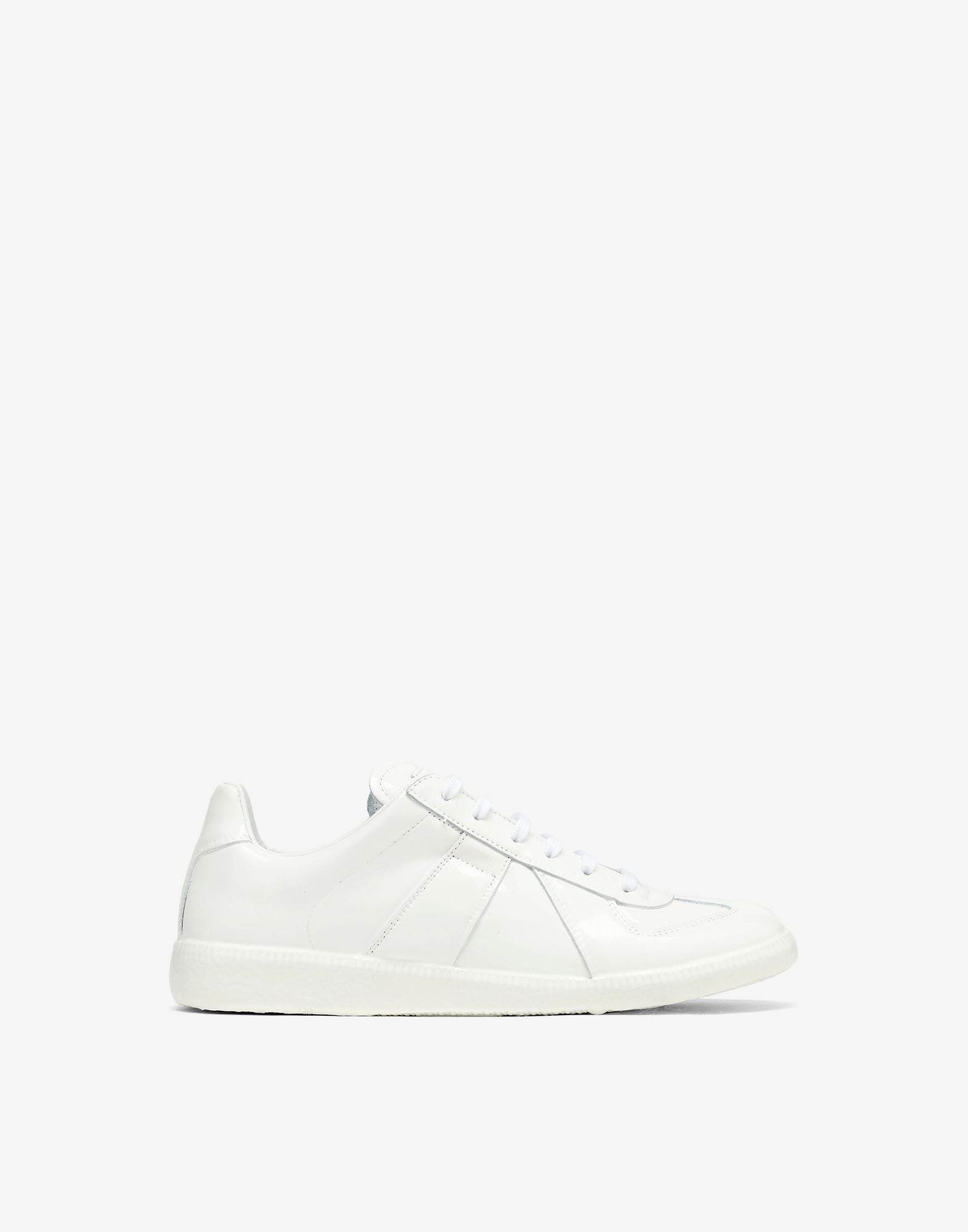 Replica sneakers in leather with rubberized color coating with the numerical logo on the tongue and iconic stitch mark at the back. The Maison's famous Replica sneakers are inspired by men's sports shoes from the Austrian province in the seventies. Details on the Replica pairs are continually reworked in line with the season's inspirations. Made in Italy. Item details 100% Bovine leather Varnished effect Brand logo Laces Round toeline Fully lined Rubber sole