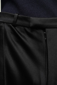 Crafted from satin, this two-piece suit has a double-breasted blazer with notched collar and oversized trousers. The cuff show the Maison's memory of concept and an asymmetric M button is featured. At the back, the four white stitches show the hand of the Maison: the opposite of a label. Product Details Item ID SI1FT0002S49465900 Composition: 52% Viscose, 48% Acetate Lining: 68% Viscose-Rayon, 32% Silk Pocket Lining: 100% Cotton Double-breasted Horn button closure with red M application Welt chest pocket Flap pockets Peak lapel Four stitches at the back Made in Italy The model is 5'9" tall and wears size 46.