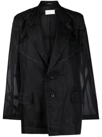 sheer-panel single-breasted jacket When it comes to unexpected silhouettes, you're top of the class, wearing this Maison Margiela design. Show off your smarts in style with this semi-sheer, single-breasted blazer. Full marks. Made in Italy Composition Outer: Cotton 100% Lining: Polyamide 100%, Polyester 100% SIZE & FIT Model measurements Height 5 ft 10 in(1.77 m) Bust/Chest 30.7 in(78 cm) Hips 34.64 in(88 cm) Waist 24.01 in(61 cm) FittingInformation This piece fits true to size. We recommend you get your regular size Cut for a loose fit Made with a lightweight non-stretch fabric