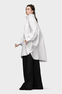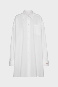 The long shirt is crafted from cotton poplin with a classic collar, patch pocket and curved hem. Maison Margiela's signature, the Four stitches, appear at the back; the opposite of a label. Product Details Item ID S51DL0253S54750100 Composition: 100% cotton Cotton popline long shirt Pointed collar Patch pocket Mother of pearl button closure Buttoned cuffs Curved hem Side slits Four stitches at the back Made in Italy Model is 5'8" tall and wears a size S.