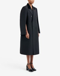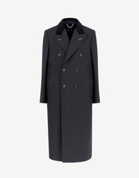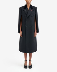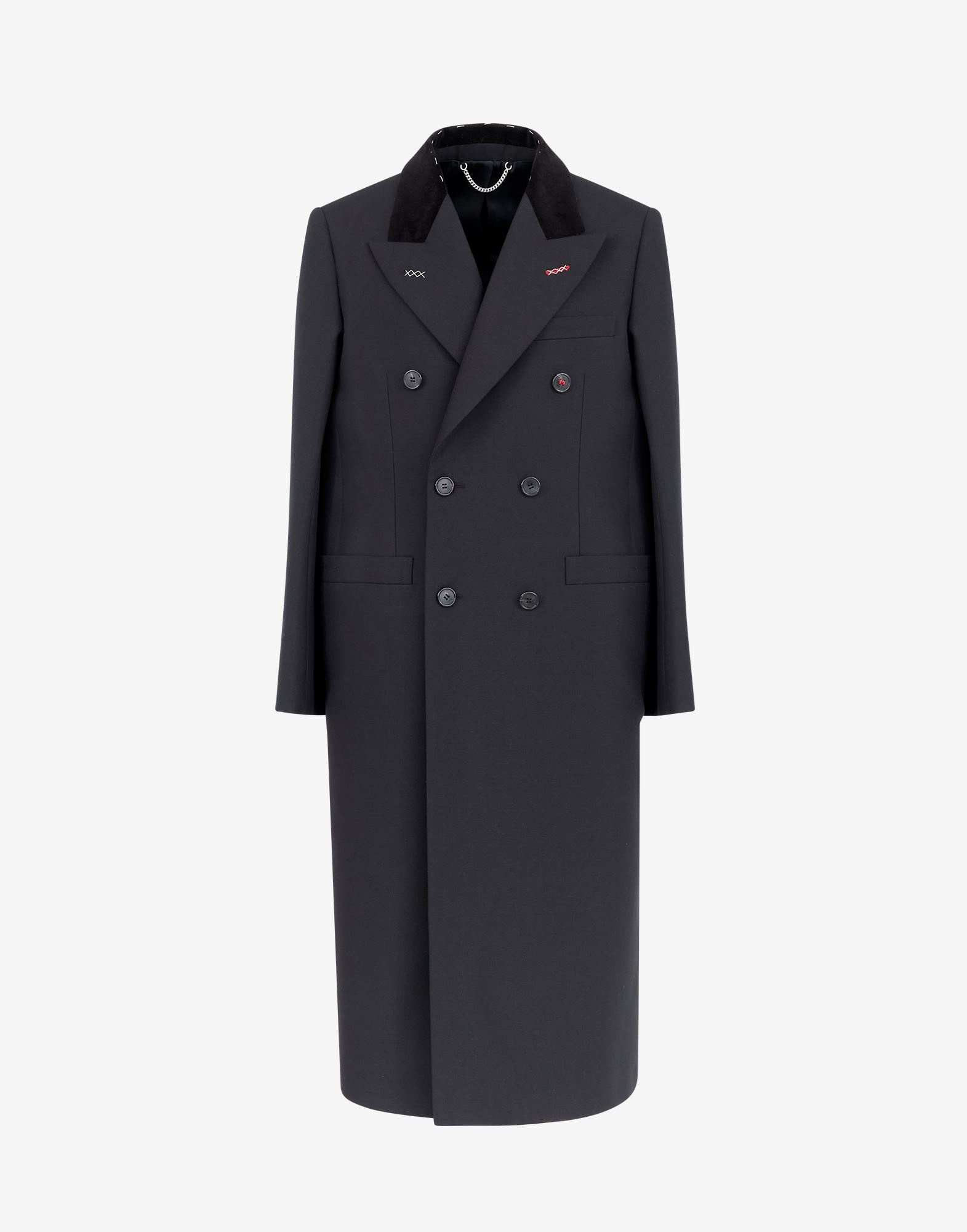 Double-breasted shrug-coat in elegant British mohair, inspired by the Artisanal collection for men in 2019. It features work-in-progress stitch details and 'Memory of' cuffs, Décortiqué details and welt front pockets. The first button is the M button embroidered in red – part of the identity of the ICONS collection. The back is finished with a single vent and the Maison's four-stitches moniker. Made in Italy. Item details 70% Wool, 30% Mohair wool Velvet Plain weave Solid color Lapel collar Short sleeves Three pockets One inside pocket Button closing Rear slit Fully lined Contains non-textile parts of animal origin