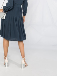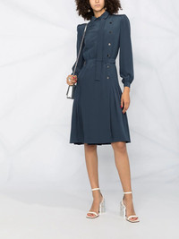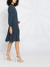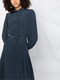 side button fastening belted dress Elegant, feminine, timeless. Yes, this silky side button fastening belted dress from Maison Margiela ticks it all. Just say yes to the dress. Highlights - Blue - Silk - Classic collar - Bow detailing - Side button fastening - Long sleeves - Belted waist - Flared design Made in Italy Composition Outer: Silk 100% Lining: Acetate 54%, Polyamide 26%, Silk 20% SIZE & FIT Model measurements Height 5 ft 10 in(1.79 m) Bust/Chest 31.88 in(81 cm) Hips 35.43 in(90 cm) Waist 23.62 in(60 cm) FittingInformation This piece fits true to size. We recommend you get your regular size Designed for a close fit at the bust, waist and hips Made with a mid-weight non-stretch fabric Washing instructions Dry Clean Only