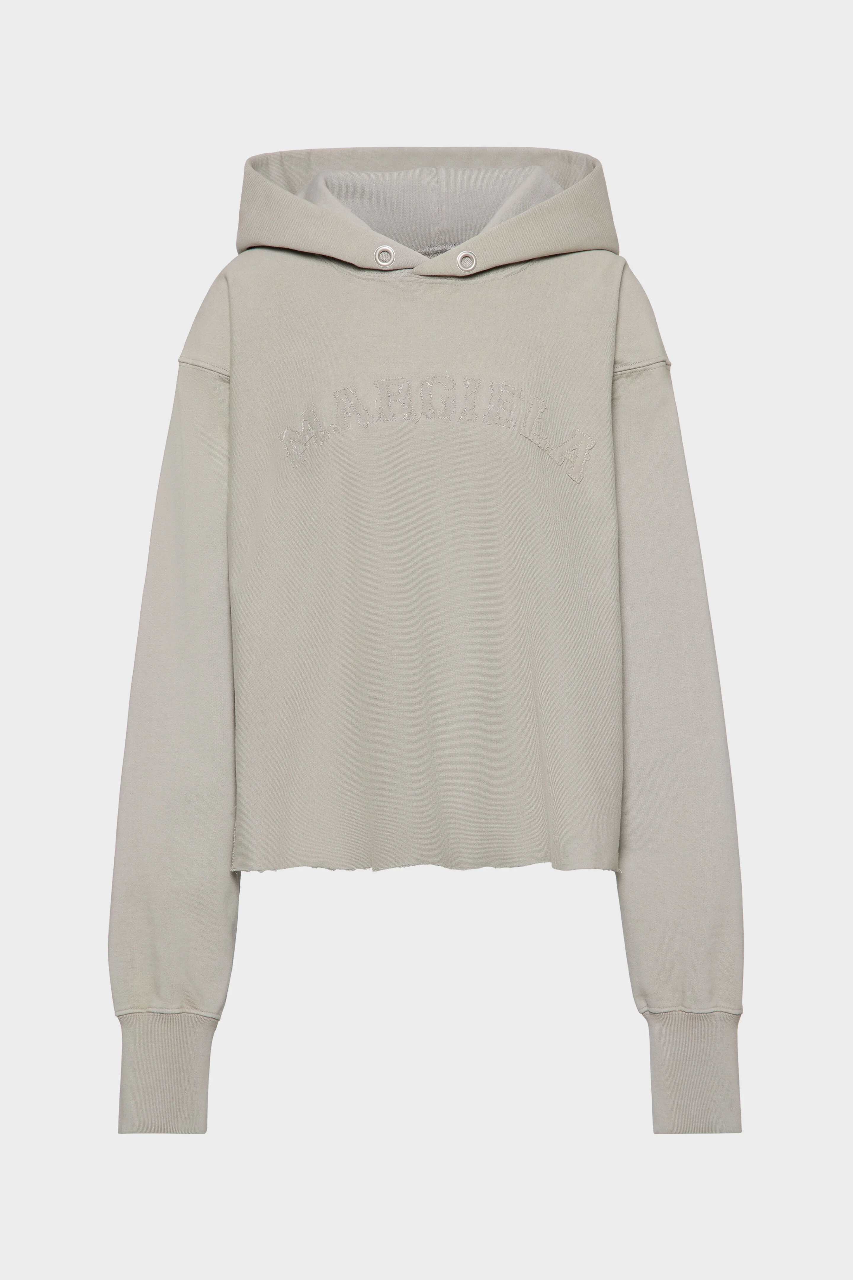 An elevated take on collegiate codes, this cropped hooded sweatshirt incorporates tonal terry embroidery and an intentionally raw hem. Its softly structured silhouette reflects the Maison’s reworking of off-duty essentials. Maison Margiela’s signature, the four stitches, appear at the back; the opposite of a label. Product Details Item ID S51GU0139S25520803 Primary fabric: 100% cotton Lining: 100% cotton Cropped hoodie in loopback cotton jersey Dropped shoulders and long ribbed cuffs ‘MARGIELA’ embroidery at the front Raw-edge hem for a deconstructed finish Double-layered hood with eyelet detail Four stitches at the back Made in Italy