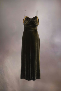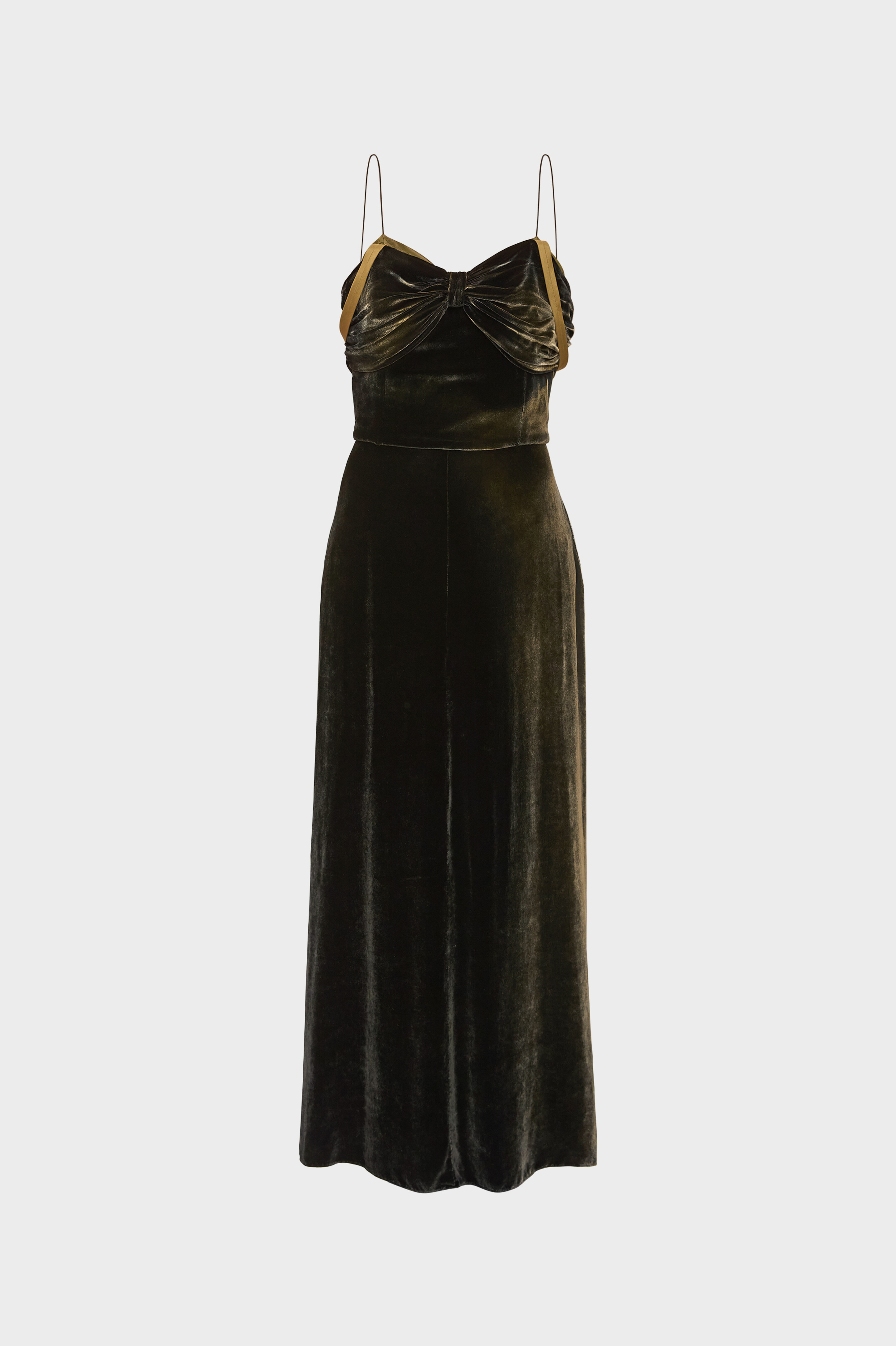 The maxi dress is designed with a double layer and crafted from silk and viscose. It features spaghetti straps with a second pair of wider straps worn loose for an undone aesthetic. A ruched bow appears at the chest with a seamed waist for a flattering silhouette. Decortique details disrupt the back with the zip left open on the backless design. A ruched layer creates volume at the back and falls longer than the hem for a dramatic finish. Product Details Item ID S51DG0003M35345961 Primary Fabric: 82% Viscose-Rayon 18% Silk Lining: 50% Acetate 50% Viscose-Rayon Viscose silk maxi dress Thin shoulder straps Sweetheart neckline Zip closure at the back Four stitches at the back Made in Italy