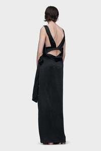 Defined by its fluid silhouette, this silk maxi dress combines architectural draping with liquid-like satin. Side gathers and an asymmetric knot introduce movement, while wide straps fall to reveal an open back. At the back, the Maison’s signature four stitches appear; the opposite of a label. Product Details Item ID S51DG0005M35797900 Primary fabric: 76% acetate, 24% silk Silk satin Maxi length Side draped bow detail Sleeveless Straight neck Backless Four stitches at the back Made in Italy