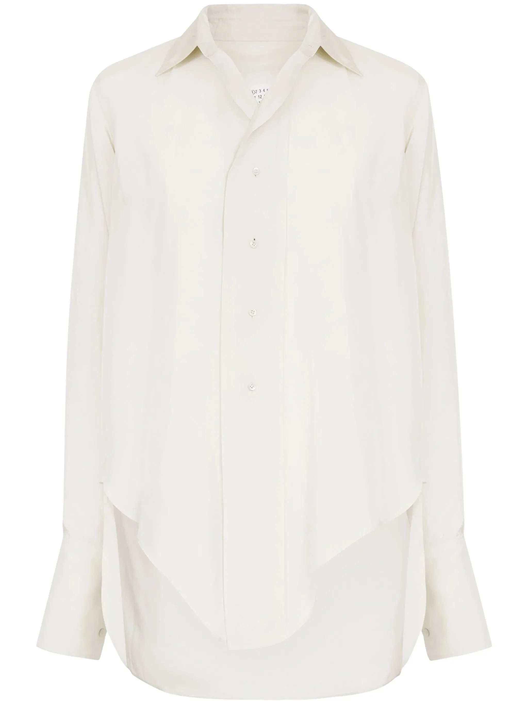 ivory white signature four-stitch logo embroidered logo front button fastening classic collar long sleeves curved hem - Color: NEUTRALS - Made in: Italy - Designer Style ID: S76632 S51DT0020 729 Composition and care Viscose: 100.0%