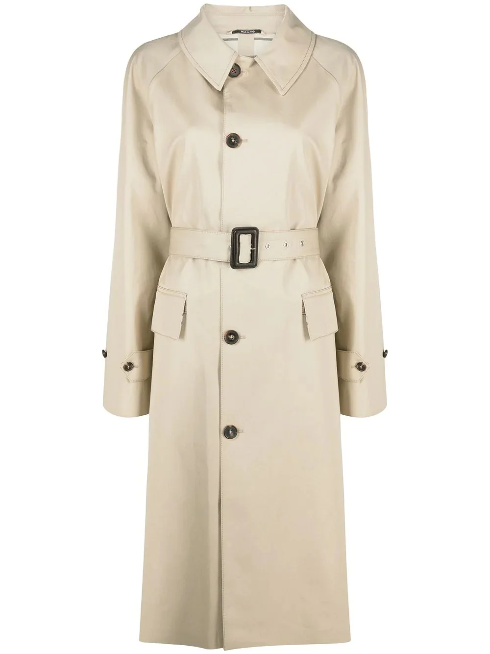 single-breasted trench coat Keep the Winter weather out, wearing this belted-waist trench coat. With this impeccably tailored Maison Margiela design, you'll be in your element. And able to enjoy the ones outside. Made in Italy Composition Outer: Cotton 100%, Virgin Wool 100% Lining: Cotton 100% Washing instructions Dry Clean Only