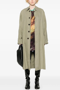 cod. S51AH0184M35137115 Manopesca fabric trench coat, unlined, single-breasted model with front button closure, long sleeves, pockets, 'Four stitches' and back slit. Color: Green Size & Fit: true to size fit Composition: 87% polyester, 13% polyamide Made in: Italy