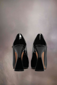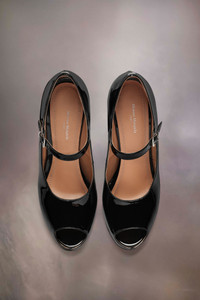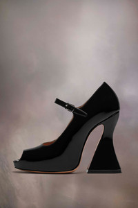 The sketch Mary-Jane shoes come in patent leather with an open toe design and statement flared high heel. The back features a single white stitch showing the hand of Maison Margiela. Product Details Item ID S58WL0255P4347T8013 Upper: 100% calf leather Lining: 100% ovine leather Inside: 100% ovine leather Contrast: 100% calf leather Sole: 100% calf leather Contrast: 100% rubber Heel height: 12 cm/5 in Platform height: 1,5 cm/0,6 in Patent leather Mary Jane pumps Open-toe Adjustable strap White stitching at the back Made in Italy A digital certificate provided by the Aura Blockchain Consortium guarantees the authenticity of this product. Discover more on auraluxuryblockchain.com/#about