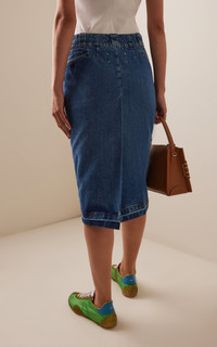 Radical conceptual designer Martin Margiela founded his eponymous couture house in 1988 and quickly established himself at the forefront of the Belgian fashion avant-garde. Made in France from non-stretch cotton denim, this knee-length skirt has a straight-cut silhouette with a raw-edge hem that's double-pleated for ease of movement. The brand's signature pick stitching can be found at the back waistband. PRODUCT DETAILS - Pre-Fall '25 - Zip fastening - Composition: 100% cotton; Lining: 65% polyester, 35% cotton - Dry clean - Made in France SIZE & FIT - Designed for a slim fit