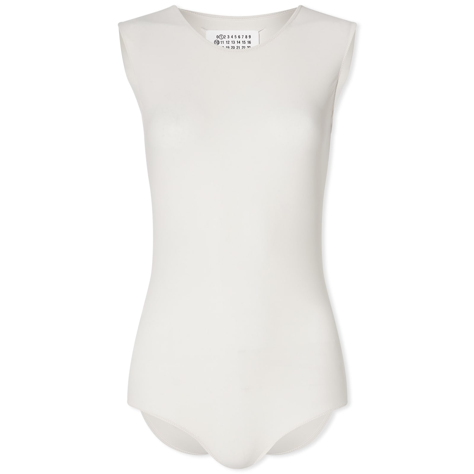 Under the creative direction of John Galliano, Maison Margiela continues to push boundaries in the world of luxury fashion. With a stretch design, this bodysuit is perfect for completing a pair of nice jeans in your off duty looks. With a snap fit fastening, a signature numeric logo is stitched inside. - 73% Polyamide, 27% Elastane - Round Neck - Embroidered Branding
