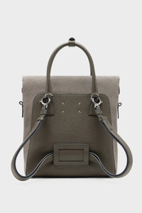 The 5AC backpack, crafted from embossed grainy leather, features top handles and a fold-over design. It is accented with the logo label at the front. The iconic 5AC line takes its name from the French word 'sac' (bag). It explores the Maison's Anonymity of the lining concept. The bag's metal rivets are covered in leather by hand, with the metal visible only where needed, for a clean aspect. Artisanal details include the bag's exposed edges handpainted in tone with the leather. The strap can be removed for multi-wear. Product Details Item ID SB1WA0013P4348T8031 Body: 100% Calf Leather Contrast: 79% Cotton 16% Polyester 5% Other Fibers Lining: 100% Cotton Inside: 100% Calf Leather Metallic hardware Document holder in grained leather and canvas Adjustable leather shoulder straps Dual top handles for handheld carry Zip closure at the top Internal flat pocket Numeric signature label at the front Four stitches at the back Made in Italy