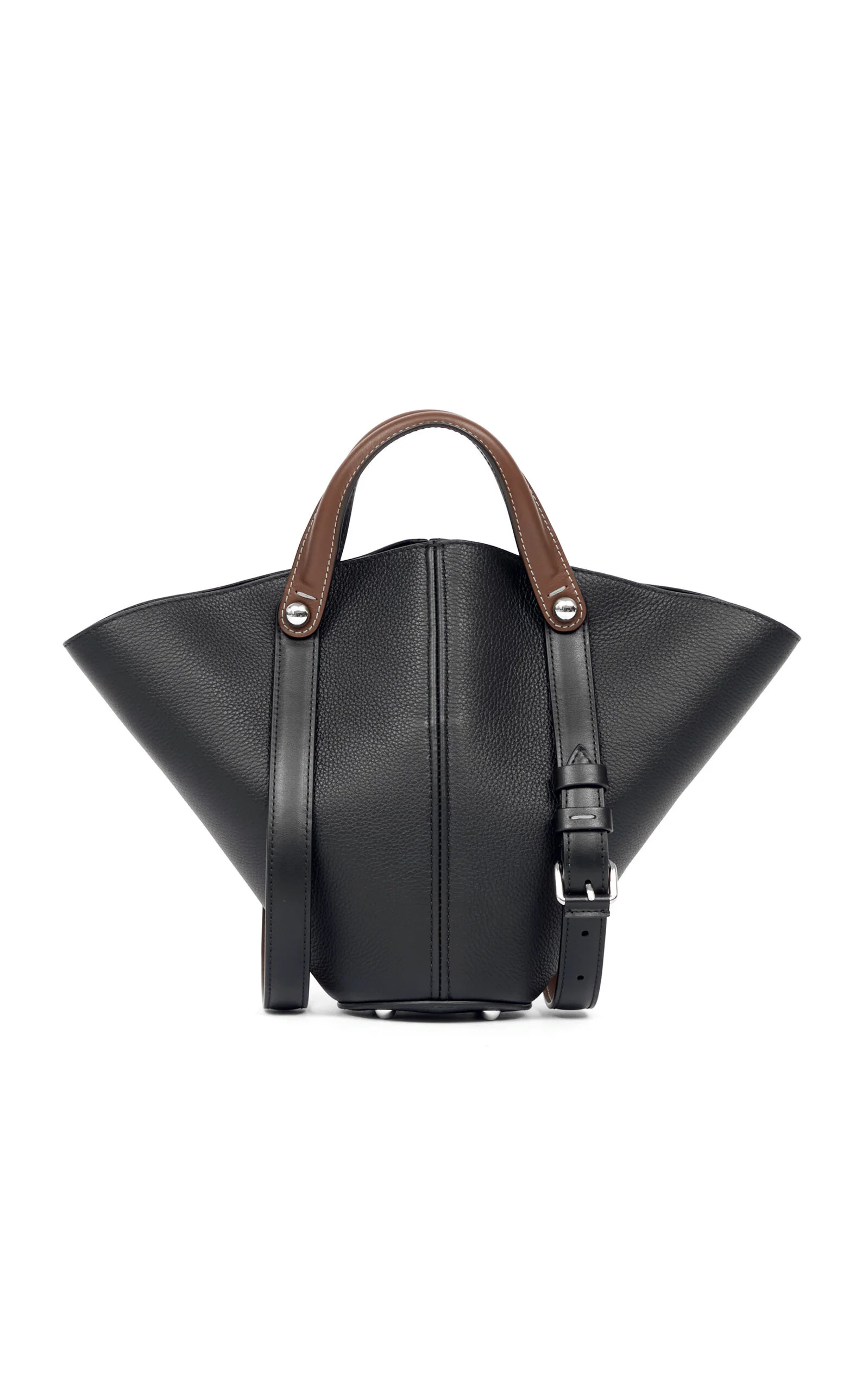 Radical conceptual designer Martin Margiela founded his eponymous couture house in 1988 and quickly established himself at the forefront of the Belgian fashion avant-garde. Today the label is run by Glenn Martens, who has maintained the brand’s intellectual blend of conceptualism and luxury. The Maison launches the Dress-age handbag, crafted from soft pebbled calfskin. With an equestrian spin, the handbag features classic leatherwork and refined lines, combining unconscious glamour with gestural design. It follows a trapezoid shape with contrast dual-wear strap detail. The studded base allows the bag to stand, and the inner is adorned with the logo. Maison Margiela's signature, the four stitches, appear at the back, the opposite of a label. PRODUCT DETAILS - Magnetic fastening - Composition: leather - Designer color: Black/ Chestnut - Made in Italy