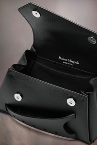 The Snatched asymmetric micro is crafted from grainy leather. The Snatched debuted in the AW19 Artisanal Collection. It lends its name from the colloquial term for 'good looks', and also the way it can be held in a snatching manner. The genderless bag presents an asymmetric shape, inspired by origami. It features a shoulder chain, top handle and a perforated front handle to be worn as a clutch. The bag introduces the Maison's rectangular mirrored lock closure, adorned with the numeric logo that unlocks on number 11. Product Details Item ID SB1WD0013P4745T8013 Body: 100% calf leather Contrast: 100% calf leather Lining: 100% polyester Metallic hardware Detachable and adjustable leather shoulder strap Snap button to adjust the width Top handle Front handle Four stitches at the front Magnetic closure Inside flat pocket Inside logo stamping Clean with a specific leather cleaner product and a damp microfiber cloth Made in Italy 12,5 cm x 6,5 cm x 20 cm/5 in x 2,5 in x 7,8 in (Height x Width x Length) Handle drop: 6 cm/2,3 in Max. shoulder strap drop: 58,5 cm/23 in Min. shoulder strap drop: 51,5 cm/20,2 in A digital certificate provided by the Aura Blockchain Consortium guarantees the authenticity of this product. Discover more on auraluxuryblockchain.com/#about
