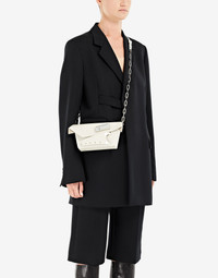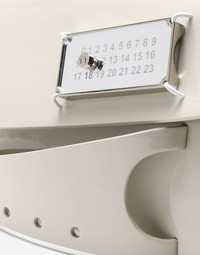 Small Snatched bag in varnished calfskin for a smooth, shiny appearance. The Snatched debuted in the AW19 Artisanal Collection. It lends its name from the slang term for 'good looks', and also the way it can be held in a snatching manner. The genderless bag presents an asymmetric shape, inspired by origami. It features a cross-body detachable chain shoulder strap, and a perforated front handle to be worn as a clutch. The bag introduces the Maison's new rectangular mirrored lock closure, adorned with the numerical logo that unlocks on number 11. Made in Italy. Item details 100% Bovine leather Width: 9.4 inches Height: 4.7 inches Depth: 2.7 inches Varnished effect Logo Framed closure Metallic straps Detachable shoulder strap Framed closure Leather lining Internal pocket