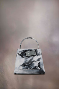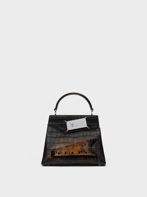 The small Snatched handbag is crafted from grainy leather with the Maison's handpainted Bianchetto treatment. The Snatched debuted in the AW19 Artisanal Collection. It lends its name from the colloquial term for 'good looks', and also the way it can be held in a snatching manner. The genderless bag presents an asymmetric shape, inspired by origami. It features a top handle, and a perforated front handle to be worn as a clutch. The bag introduces the Maison's rectangular mirrored lock closure, adorned with the numeric logo that unlocks on number 11. Product Details Item ID S56WG0168P7249HA202