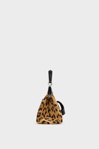 The Snatched handbag small is crafted from a chrome-tanned hairy leather in colourful leopard print. The Snatched debuted in the AW19 Artisanal Collection. It lends its name from the colloquial term for 'good looks', and also the way it can be held in a snatching manner. The genderless bag presents an asymmetric shape, inspired by origami. It features a leather shoulder strap, and a perforated front handle to be worn as a clutch. The bag introduces the Maison's rectangular mirrored lock closure, adorned with the numeric logo that unlocks on number 11. Product Details Item ID S56WG0168P8316HA923 Body: 100% Calf Leather Contrast: 100% Calf Leather Inside: 100% Calf Leather Lining: 100% Polyester Metallic hardware Handbag in leopard printed calf leather Detachable and adjustable leather shoulder strap Top handle Front logo closure Front handle Inside flat pocket Inside logo stamping Metal feet Clean the leather part with Maison Margiela leather kit Made in Italy