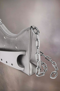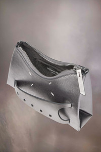 The Snatched hobo micro is crafted from metallic grainy leather. The Snatched debuted in the AW19 Artisanal Collection. It lends its name from the colloquial term for 'good looks', and also the way it can be held in a snatching manner. The genderless bag presents an asymmetric shape, inspired by origami. It features a chain, and a perforated front handle to be worn as a clutch. The bag introduces the Maison's rectangular mirrored lock closure, adorned with the numeric logo that unlocks on number 11. Product Details Item ID SB1WG0055P7247H3809