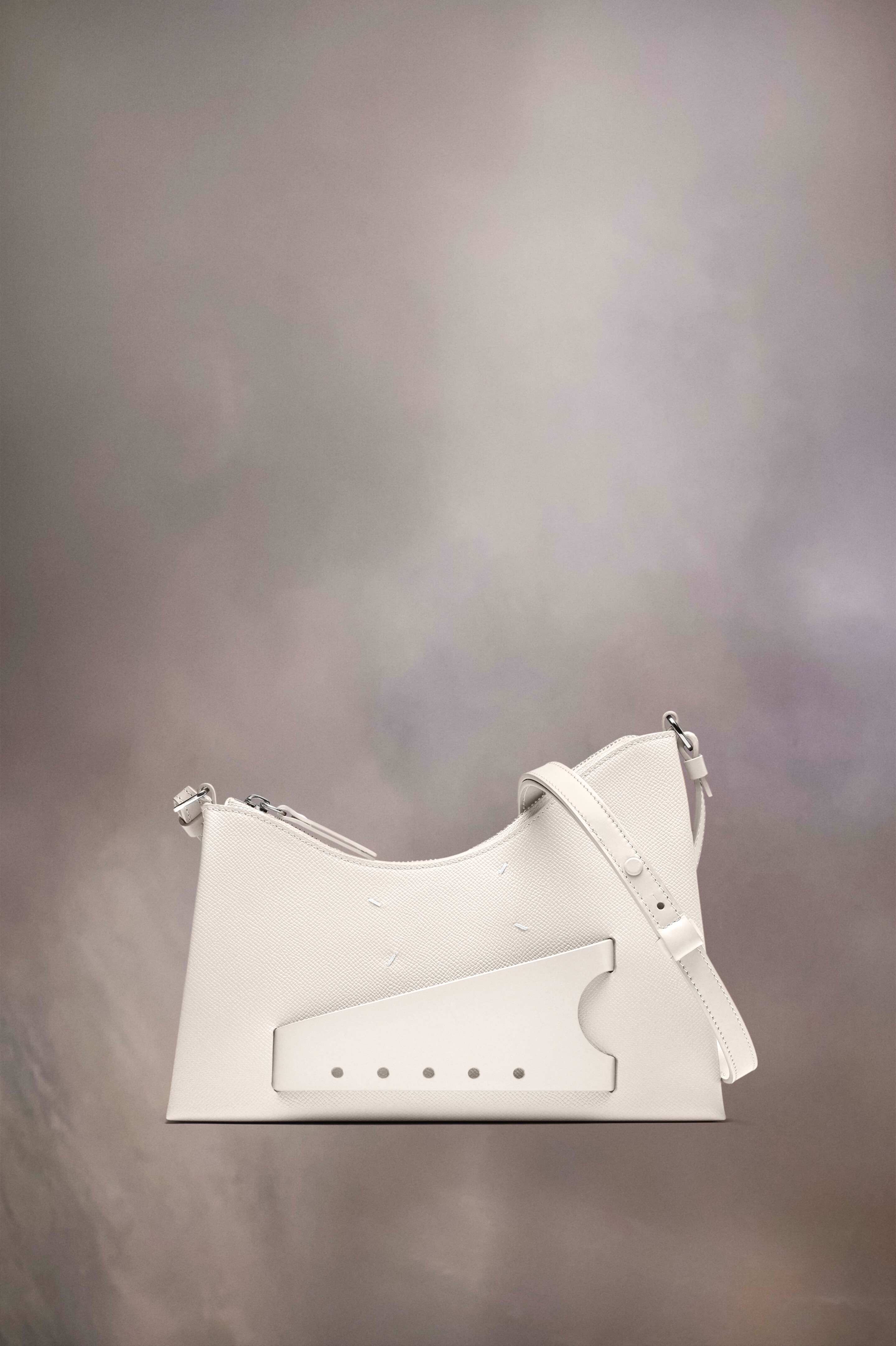The Snatched hobo small is crafted from grainy leather. The Snatched debuted in the AW19 Artisanal Collection. It lends its name from the colloquial term for 'good looks', and also the way it can be held in a snatching manner. The genderless bag presents an asymmetric shape, inspired by origami. It features a shoulder strap, and a perforated front handle to be worn as a clutch. The bag introduces the Maison's rectangular mirrored lock closure, adorned with the numeric logo that unlocks on number 11. Product Details Item ID SB1WG0054P4745T2003 Body: 100% calf leather Contrast: 100% calf leather Lining: 100% polyester Metallic hardware Adjustable leather shoulder strap Front handle Four stitches at the front Zip closure Inside logo stamping Inside flat pocket Clean with a specific leather cleaner product and a damp microfiber cloth Made in Italy 19 cm x 7 cm x 27 cm/7,5 in x 2,7 in x 10,6 in (Height x Width x Length) Max. shoulder strap drop: 58 cm/28,8 in Min. shoulder strap drop: 35,5 cm/14 in A digital certificate provided by the Aura Blockchain Consortium guarantees the authenticity of this product. Discover more on auraluxuryblockchain.com/#about