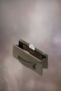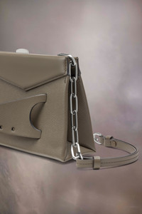 The small Snatched shoulder bag clutch is crafted from grainy leather. The Snatched debuted in the AW19 Artisanal Collection. It lends its name from the colloquial term for 'good looks', and also the way it can be held in a snatching manner. The genderless bag presents an asymmetric shape, inspired by origami. It features a chain strap, and a perforated front handle to be worn as a clutch. Product Details Item ID SB1WD0028P4745T8031
