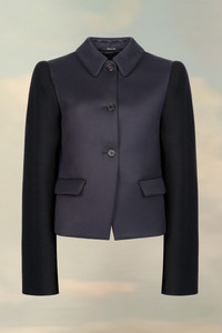 The wool twill jacket features spliced batwing sleeves and features a collar, buttons and two envelope pockets. Maison Margiela's signature, the four stitches, appear at the back; the opposite of a label. Product Details Item ID SI0BN0004S54881511 The model is 5'10" tall and wears size 40.